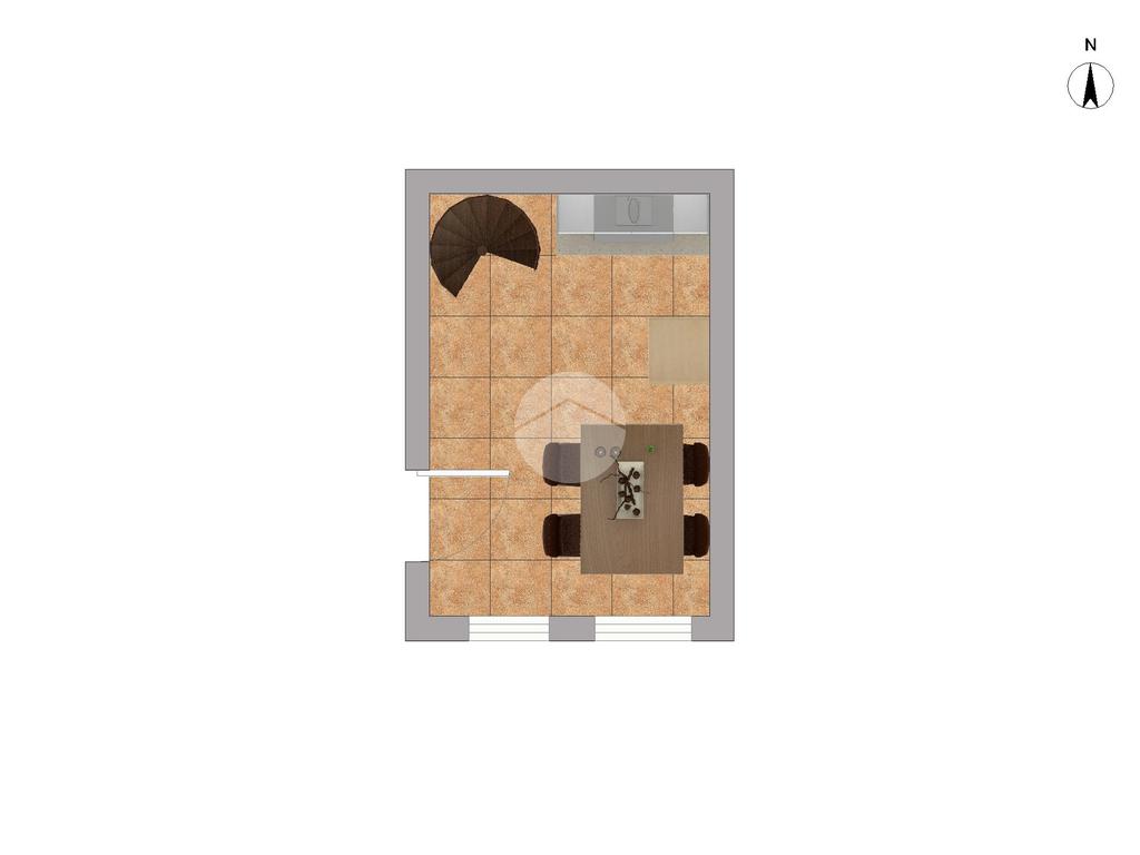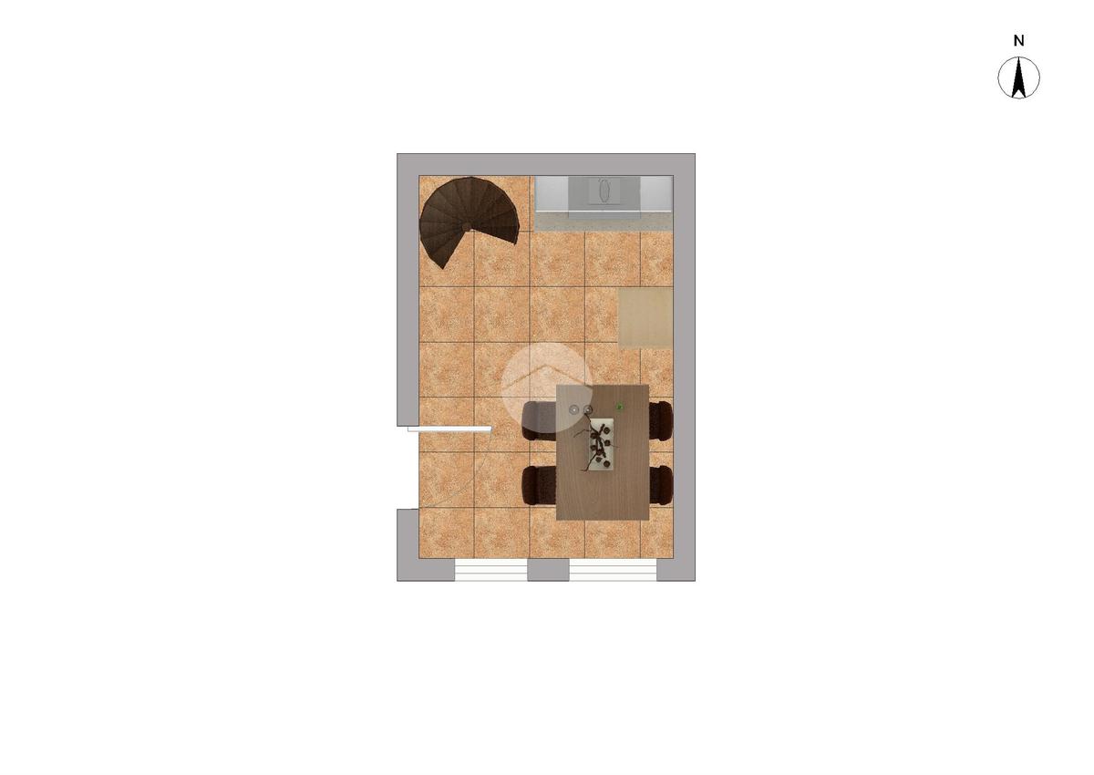 L’accesso avviene tramite un cancelletto pedonale privato al piano terra che conduce direttamente all’ingresso dell’appartamento. Il primo livello ospita la zona cucina-soggiorno, organizzata in un ambiente unico funzionale con uscita diretta sul giardino, creando una continuità armoniosa tra interno ed esterno.