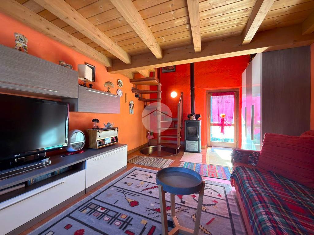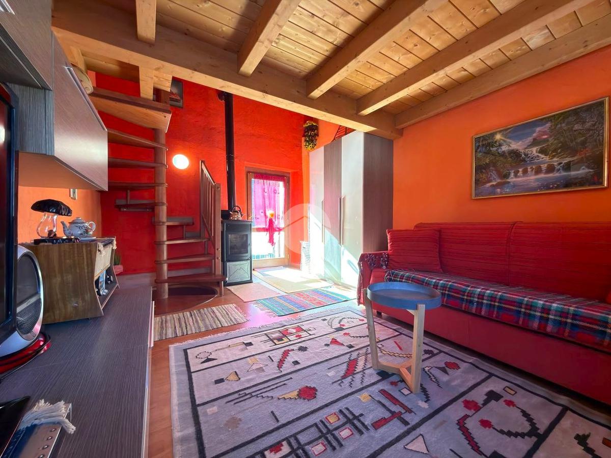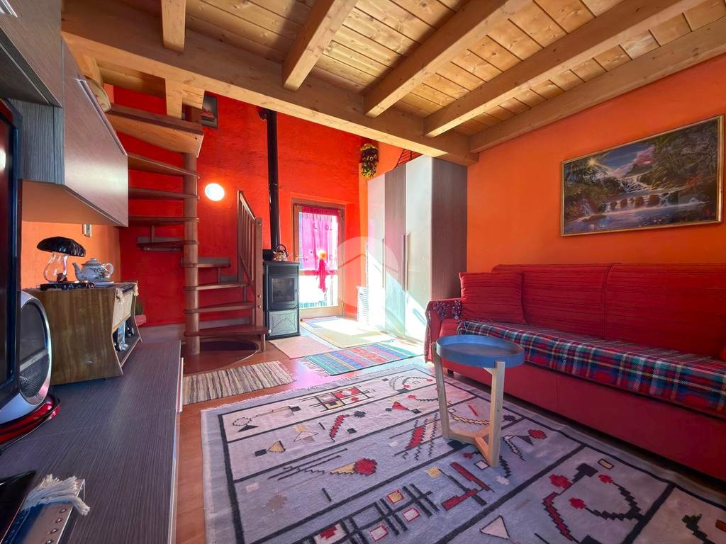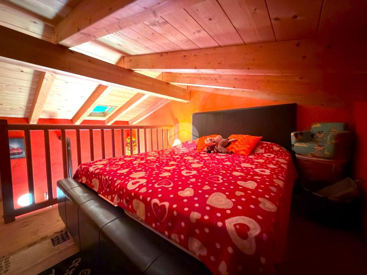 Proseguendo al livello sovrastante si trova un ulteriore locale versatile, utilizzabile come seconda camera o come spazio living aggiuntivo, con accesso a un balcone esposto a sud. L’ambiente è completato da un soppalco che ospita un letto matrimoniale, soluzione che ottimizza gli spazi e aumenta la capacità ricettiva dell’abitazione.